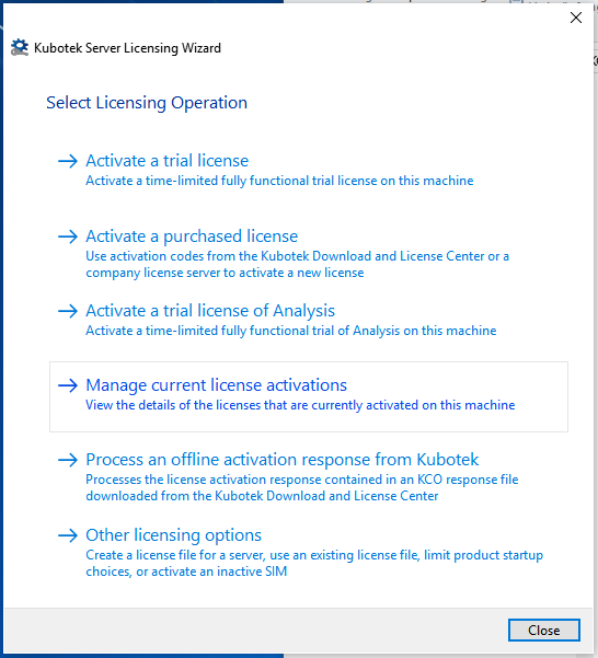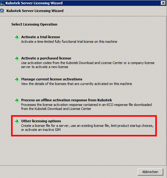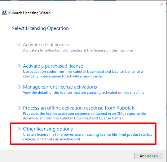 Im Kubotek Licensing Wizard wählen Sie „Other Licensing Options“
