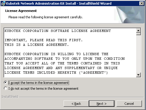 Annahme des Kubotek Software Lizenzvertrages durch Auswahl von