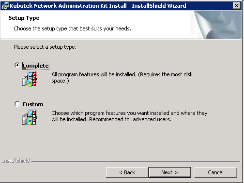 Auswahl der zu installierenden Komponenten des Kubotek Netzwerk Lizenzmanagers. Empfohlen: „Complete“.