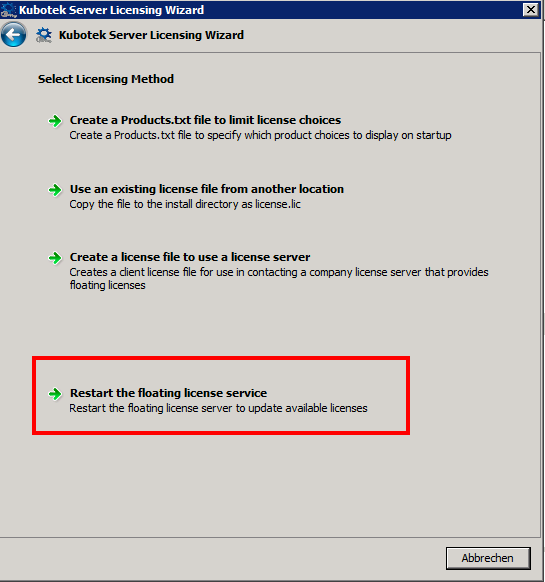 Um die aktuelle KeyCreator Netzwerklizenz zu aktivieren, müssen Sie den Lizenzmanager neu starten.