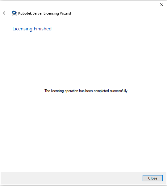 Bestätigen Sie die Meldung und schließen Sie den Kubotek Server Licensing Wizard.
