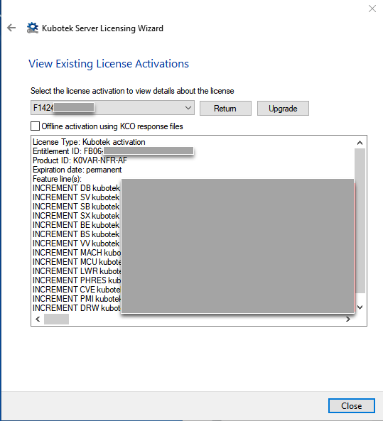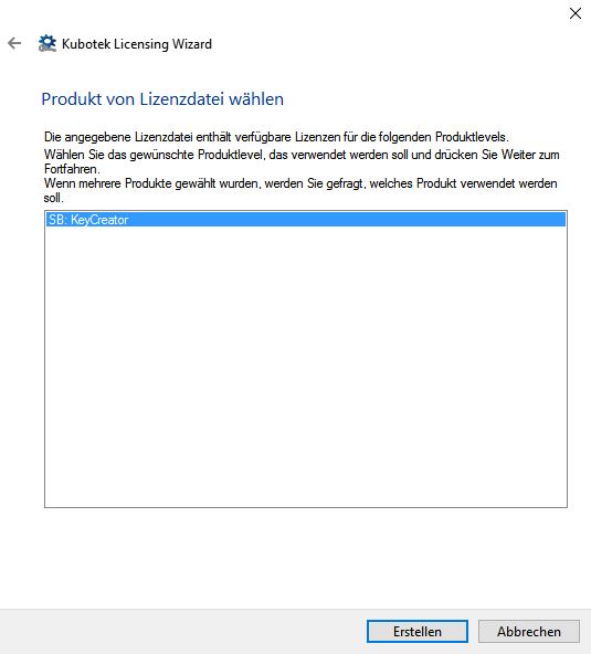 Wählen Sie eine oder mehrere der verfügbaren Lizenzkonfigurationen für das Kubotek Produkt auf diesem Rechner.