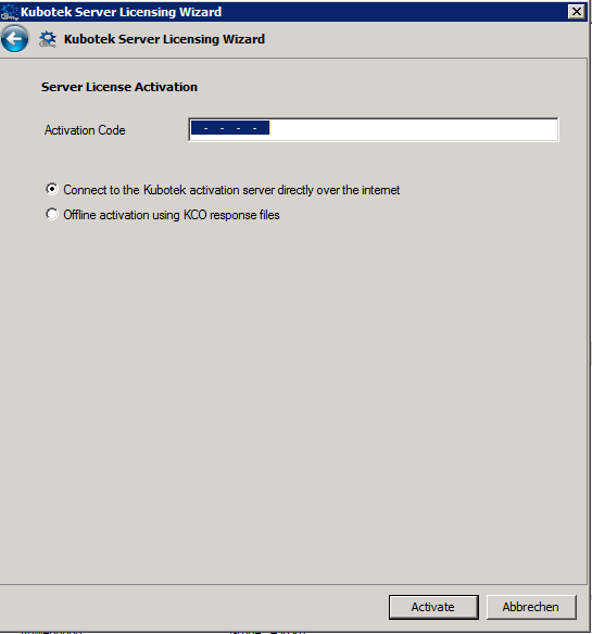 2.b Mit einem Aktivierungscode. Dazu haben Sie von uns einen oder mehrere Aktivierungscodes (20-stellig) für ihre Kubotek Lizenzen erhalten.
